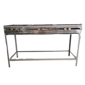 Fabricada en ángulo de 1 ⅛” y acero satinado calidad 430, esta estufa de tres puestos está diseñada para optimizar el espacio sin sacrificar potencia ni resistencia.